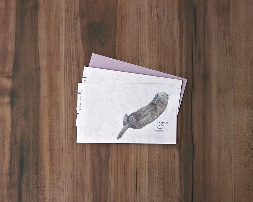 ラッコをモチーフに、「動物たちの名刺」のようなイメージでデザインしたメッセージカードです。