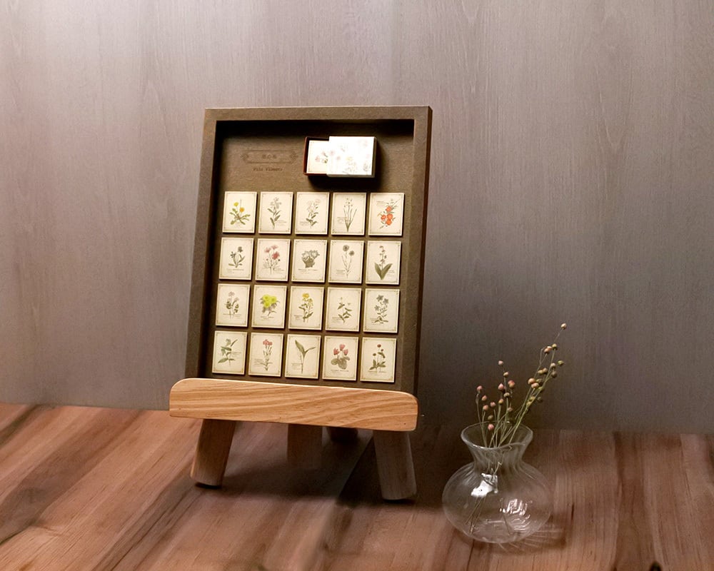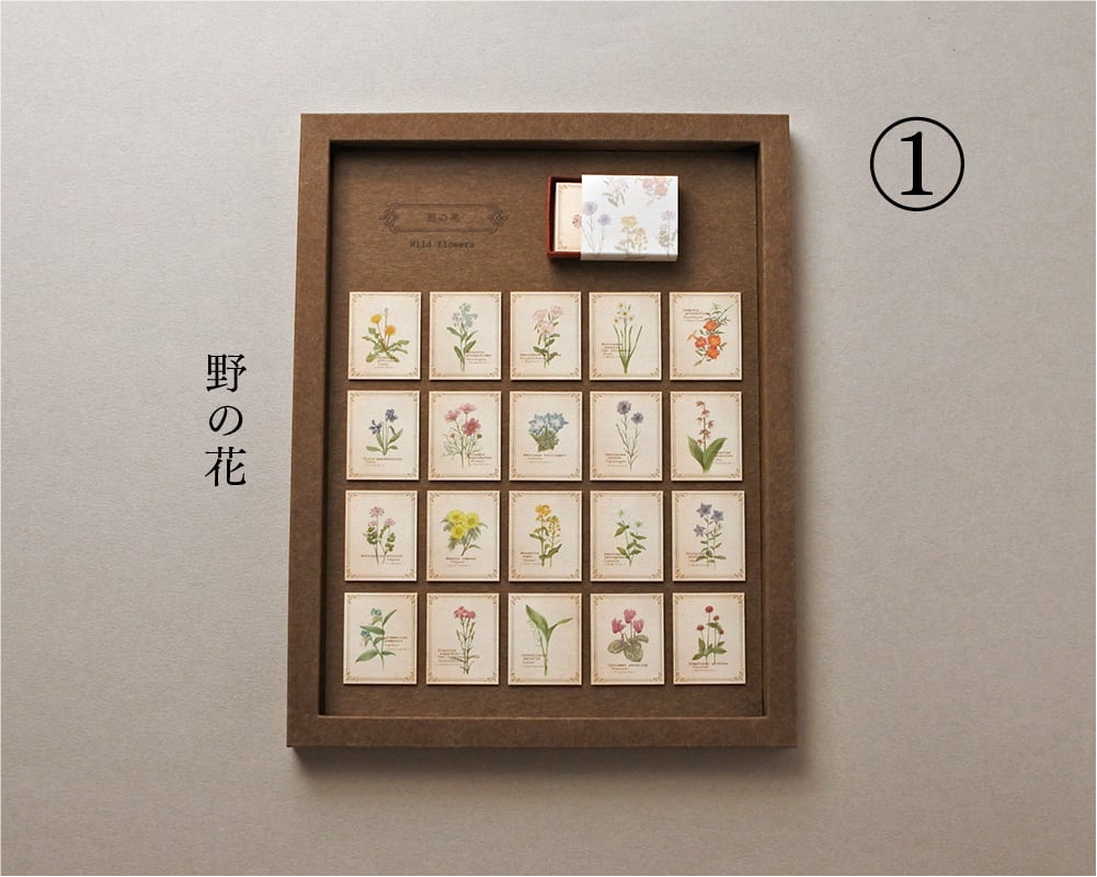 小さな箱やカードは、フレームに貼り付けた状態でお届けしますので、そのまま飾れます。