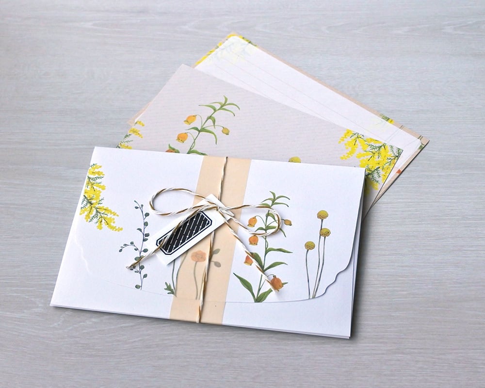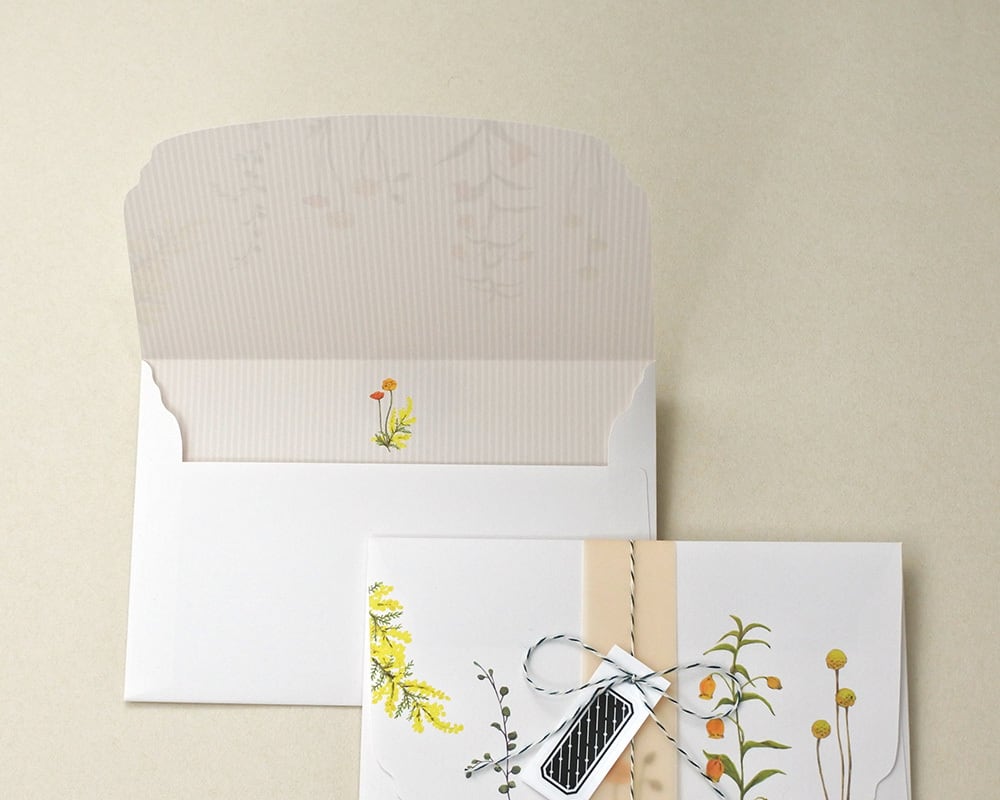 大切な方へのお手紙に、さりげなく花を添えて送るようなシーンをイメージしたレターセットです。