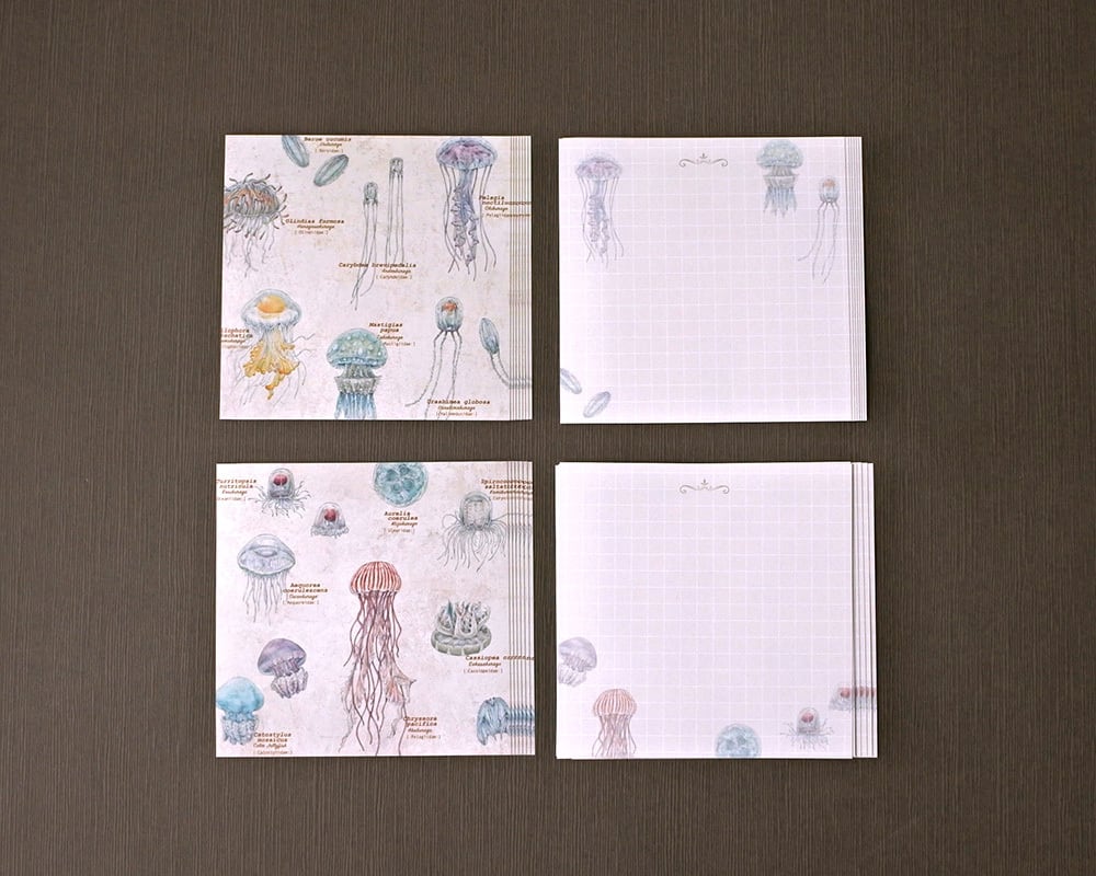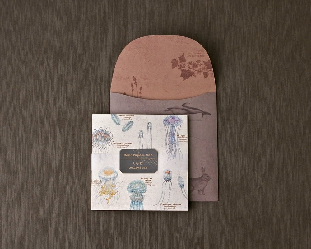 様々なくらげを丁寧に描きくらげ図鑑柄のデザインに仕上げています。