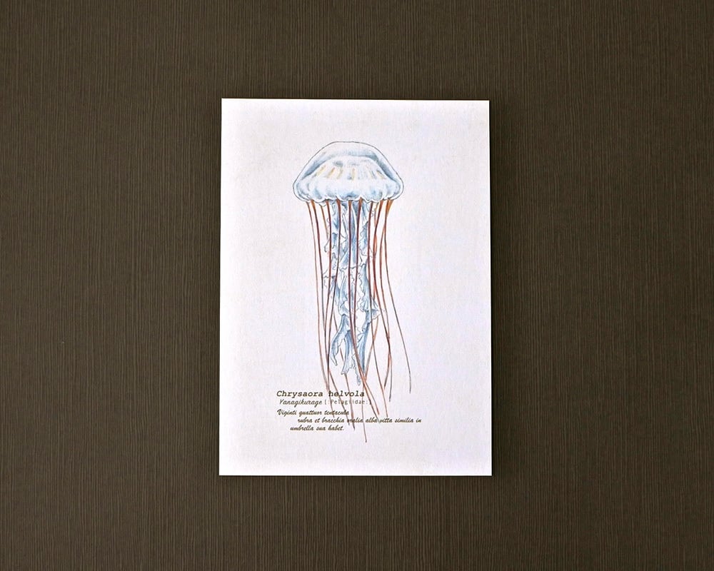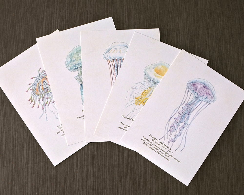 5種類のくらげをモチーフに描いたポストカードセットです。